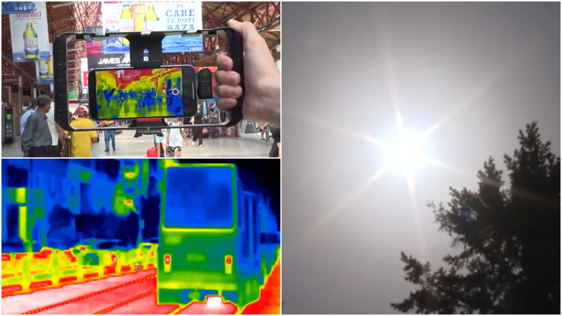 Andre Rotaru, jurnalist Euronews: "Filmarea noastră în Gara de Nord a durat mai puțin de 30 de minute. În acest timp, mașina pe care am utilizat-o a fost parcată la soare. Caroseria ajunge în acest moment până la 70-71 de grade Celsius, iar în interior vedem că în zonele unde soarele a bătut, temperatura ajunge chiar și la 60-61 de grade Celsius. Asta pe bord, iar pe scaunul din față, cea mai fierbintre zonă are aproximativ 52-53 de grade Celsius".