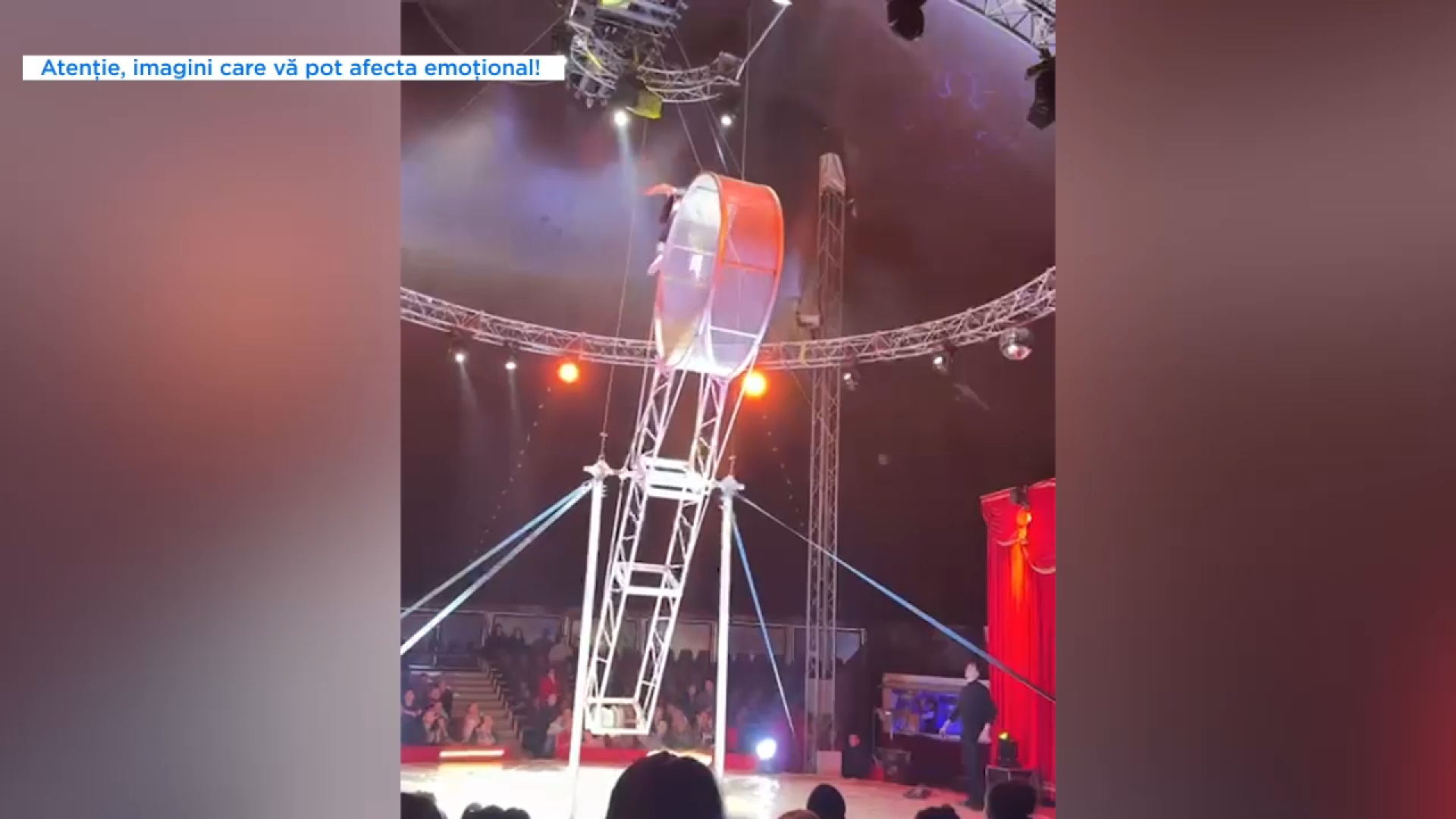 Angajat circ: Sperăm să nu se mai întâmple. (Reporter: Ați mai văzut numărul acesta pe așa zisă roată a morții?) Da, cred că a fost în fiecare spectacol. Într-adevăr, copiilor le place, dar e cam periculos.