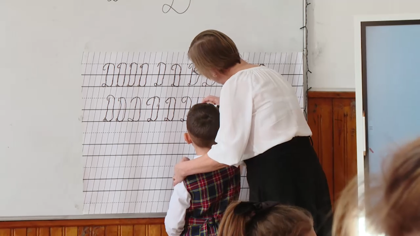 Tatiana Suciu, educatoare: „Clasele nu sunt omogene. Un copil are nevoi. Ați observat, poate dacă stăteam mai mult chiar pe litera D, a depășit spațiul…și așa că uneori suntem puțin cam pe repede înainte. 3609 Cu atât rămân. Eu nu glumesc, cu atât rămân. Îi mai pun eu mâine, mai facem încă o dată consolidare și doar atât.”