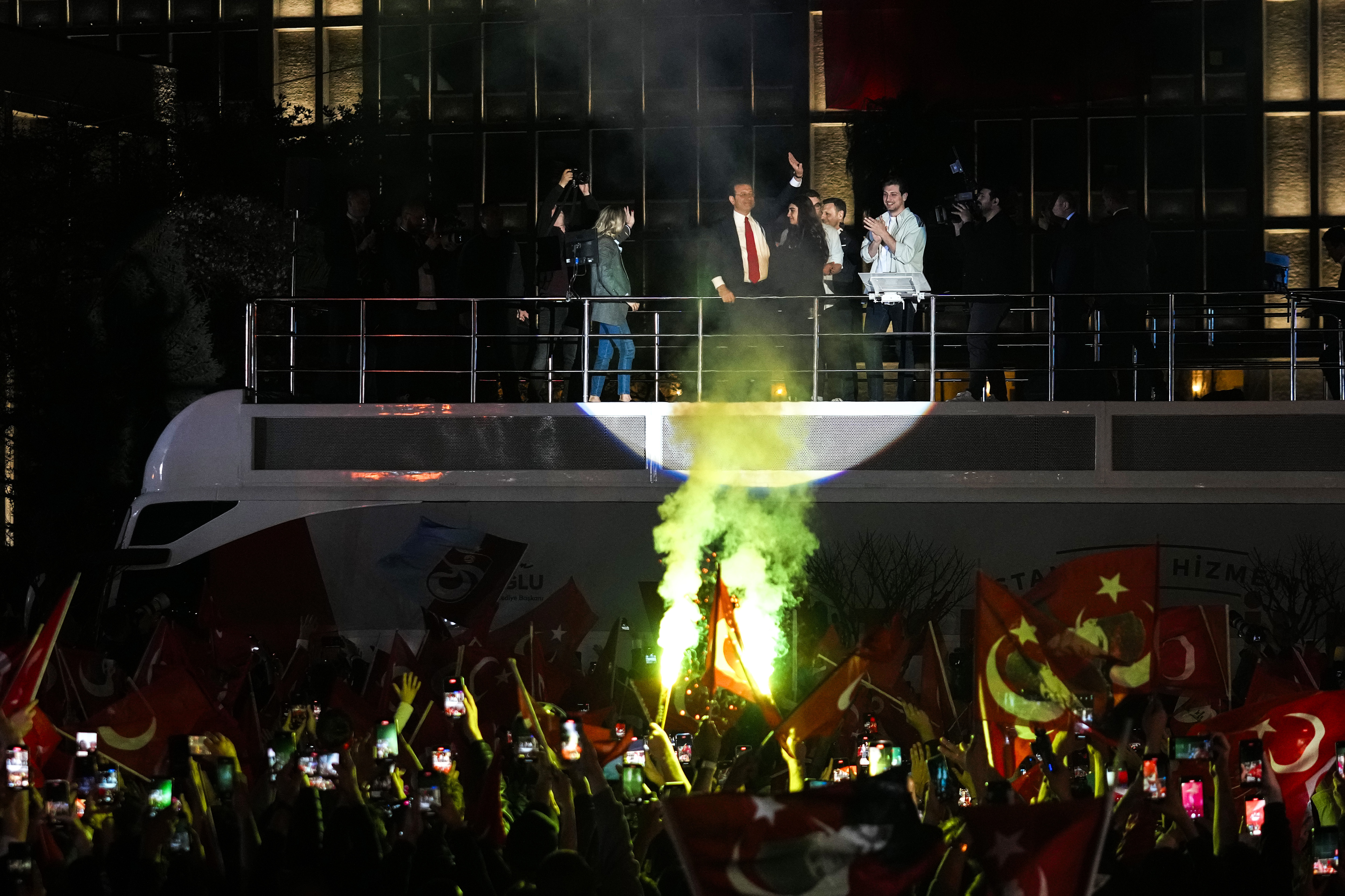Liderul social-democrat Ekrem Imamoglu, care este și primar în Istanbul, a ținut și el un discurs în care își anunța victoria, în fața a zeci de mii de oameni adunați în fața Primăriei. Aceștia au sărbătorit cu torțe, fumigene și petarde.