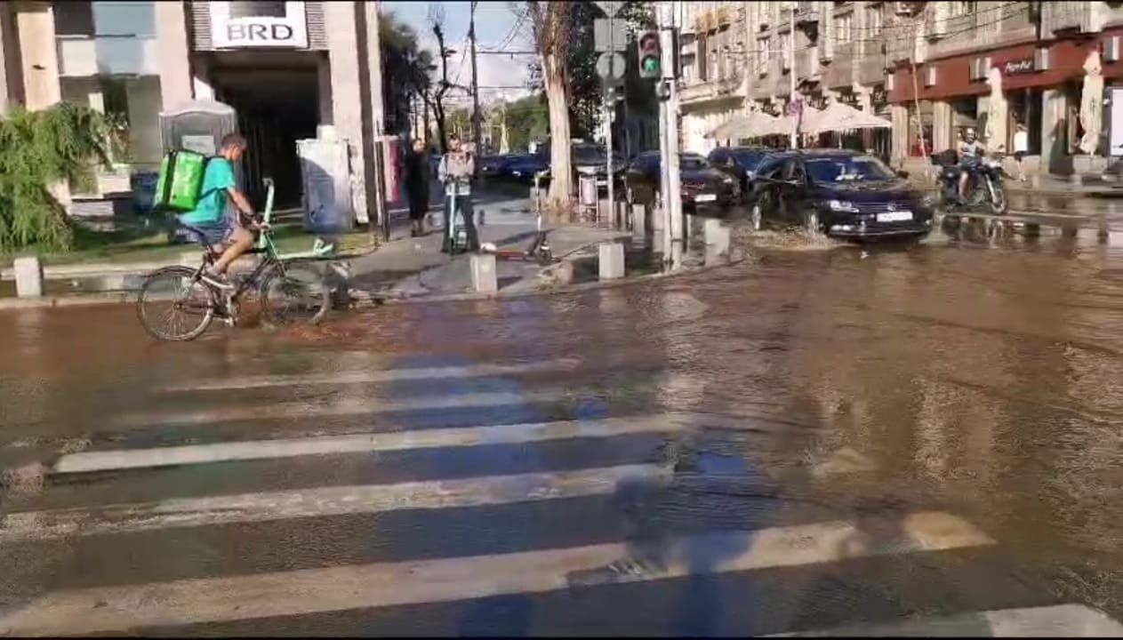 O conductă s-a spart pe Calea Victoriei în fața Cercului Militar. Când vor fi gata lucrările