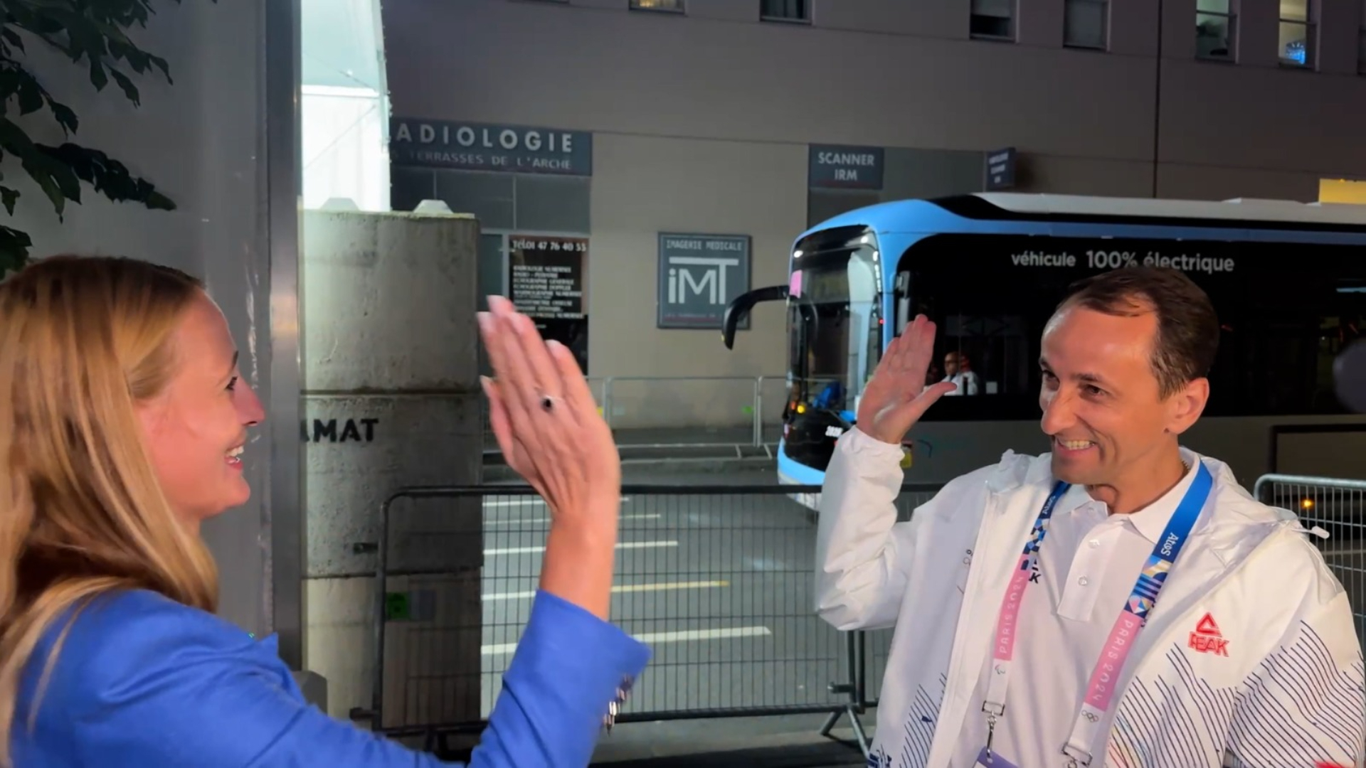 ”Am spart gheața, așa cum ne așteptam. Această medalie vine într-o zi foarte importantă pentru noi toți - ziua imnului național. David ne-a făcut această mare bucurie și această mare onoare ca de ziua imnului național să câștige medalia de aur pentru România și să ascultăm cu toții în arena de aici de la Defense, de la JO, imnul României.