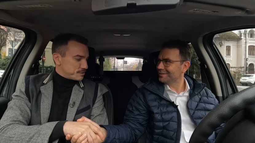 Cătălin Drulă: Mi-aș dori să începem niște proiecte mari, să facem reforma bugetului, să avem bugetul acela pe care l-au votat bucureștenii, unic la Capitală, cu funcțiuni delegate pentru sectoare și să punem orașul cu altă ordine de priorități, în care întâi investim în sistemele mari de transport, termoficare și după aia, panseluțe. O să facem un experiment astăzi. Un experiment care ar trebui să fie normalitate, nu? Adică o să merg fix până în viteza legală. Și o să vedem câtă răbdare avem și câtă răbdare avem și câtă răbdare au și ceilalți cu noi. Vedeți, deja au intrat în față două sau trei mașini pe banda de autobuz… Sunt vreo patru mașini care n-aveau voie să fie pe banda unică. A cincea intră această camionetă, practic, pentru că n-au mai avut răbdare să aștepte la semafor ca toată lumea de aici. Și aici vedem și care e problema cu traficul.