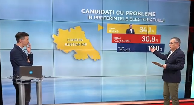 Avem liberalii: Mihai Chirica și președintele CJ Iași, Costel Alexe. Ambii au fost trimiși în judecată, dar au candidat. De exemplu, Costel Alexe, 34,1%, deci peste 3 procente distanță, greu de recuperat, având în vedere că, totuși, suntem pe final cu numărarea voturilor.