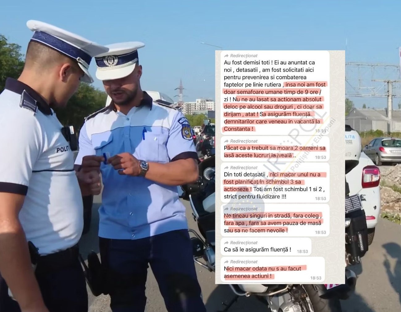 Cosmin Andreica, președintele sindicatului Europol: "Vorbim despre mesaje pe care le-am primit de pe grupurile colegilor care au fost detașați pe litoral, polițiști rutieri de la diferite inspectorate din țară. Aceștia scot în evidență că, în cele 35 de zile, au fost folosiți ca semafoare umane în intersecții sau pe drumurile către stațiuni, doar să fluidizeze, chiar dacă se impunea sau nu se impunea. Sau erau în dreptul trecerilor de pietoni, sub pretextul ajutării pietonilor care traversează.