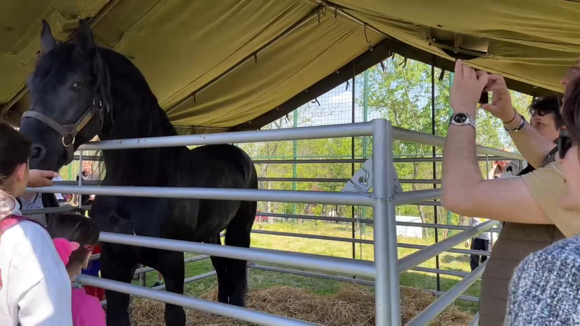 Printre animalele care au atras privirile copiilor este și Tony, un armăsar în vârstă de 12 ani din rasa Frizian, o rasă din Țările de Jos.