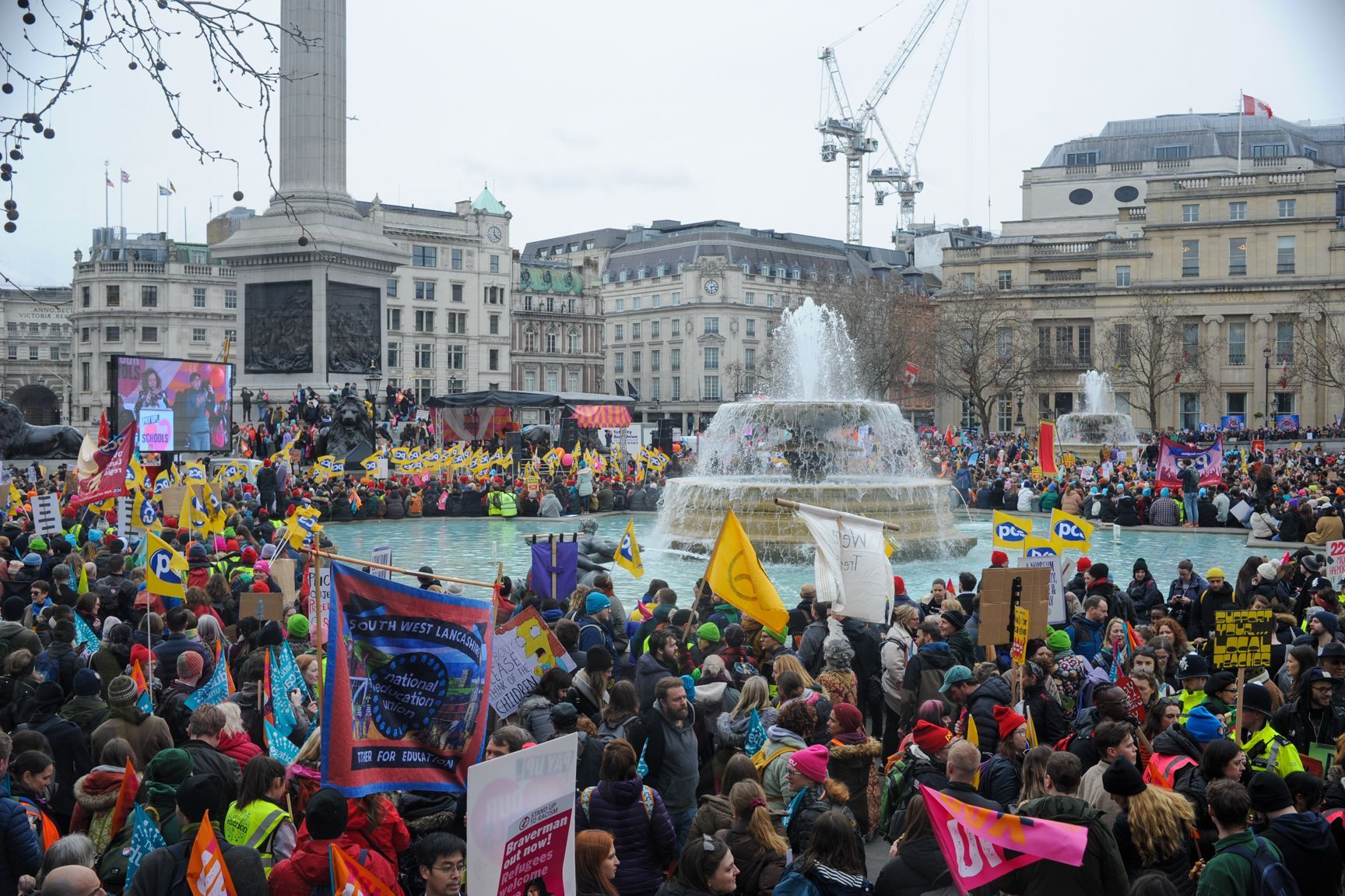 Sute de mii de salariați au intrat din nou în grevă în Marea Britanie, după ce secretarul Trezoreriei, Jeremy Hunt, a făcut public bugetul pentru această primăvară. Printre cei care au participat la proteste se numără funcționari guvernamentali, profesori, angajați de la metrou și medici. Se estimează că aceste manifestații sunt cele mai mari de la începutul valului de acțiuni sindicale, de anul trecut.