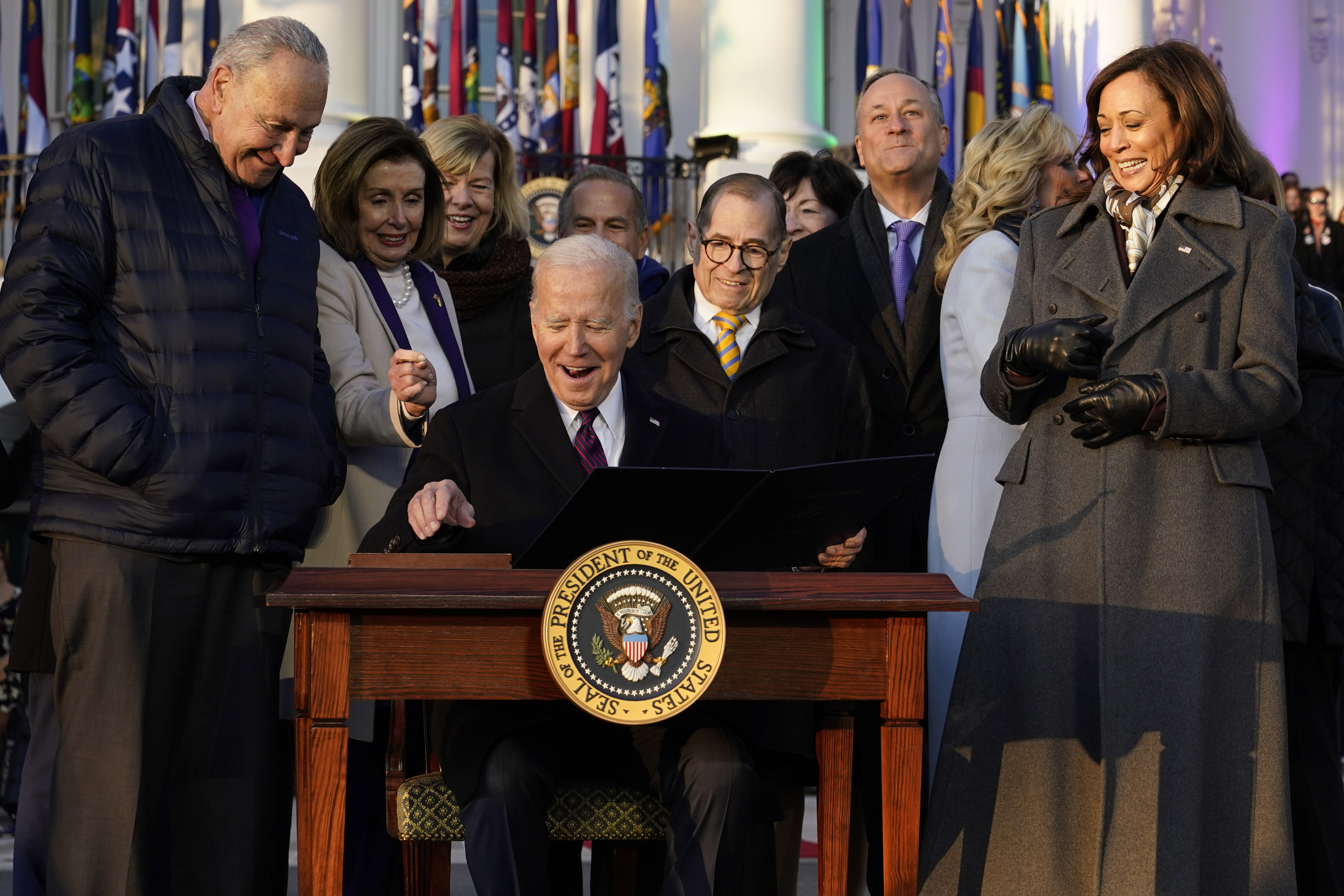 Legea "este o lovitură adusă urii în toate formele ei", a declarat preşedintele SUA."Un lucru este când Curtea Supremă pronunţă o hotărâre şi cu totul altul atunci când aleşii poporului votează în Congres pentru a spune cu voce tare şi clar: iubirea este iubire", a spus Biden în aclamaţiile unei mulţimi de 5.300 de persoane. Preşedintele s-a aşezat apoi să semneze lege. În timp ce îi înmâna stiloul Kamalei Harris a început să răsune hit-ul lui Lady Gaga, "Born this way", iar Casa Albă s-a iluminat în culorile curcubeului.