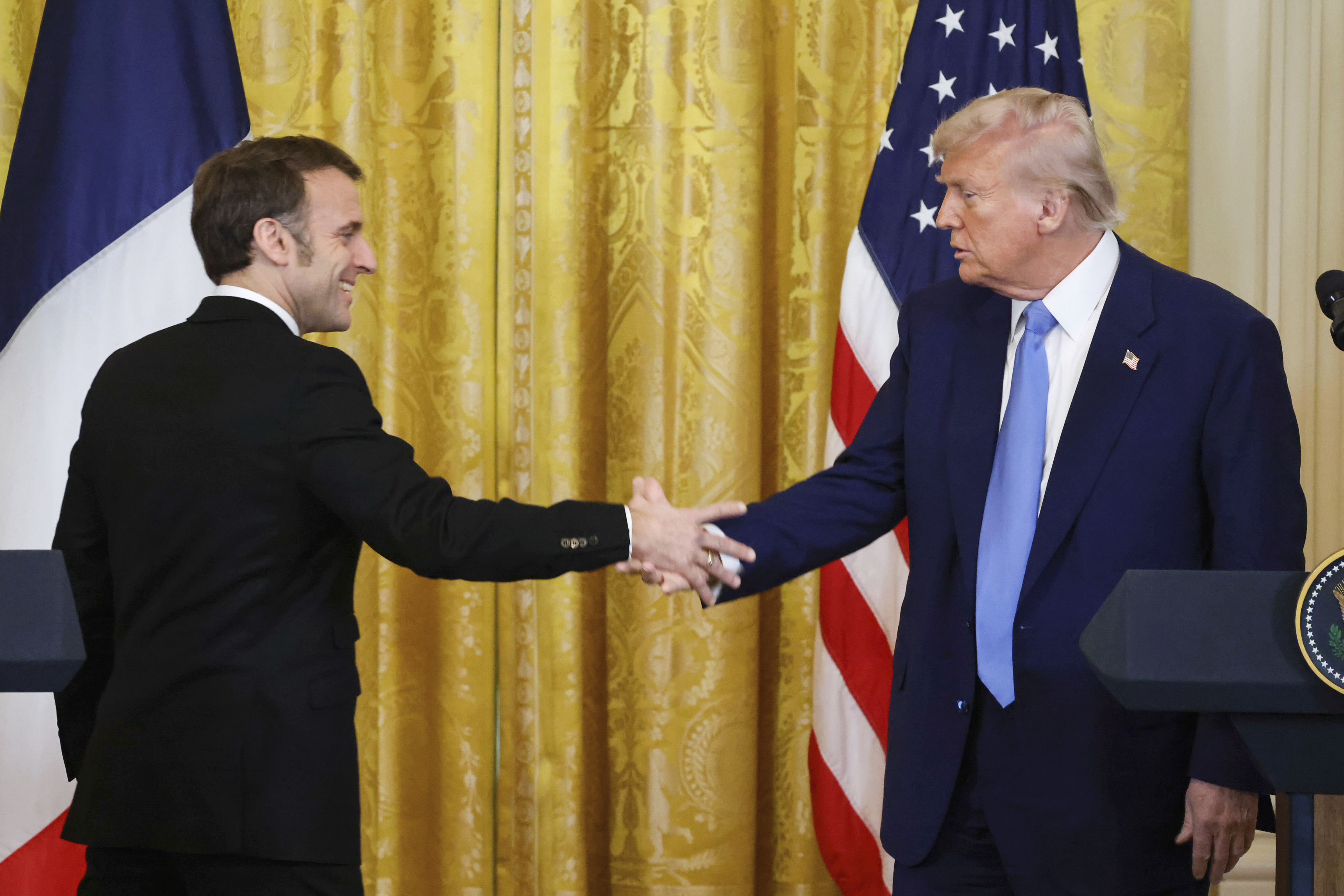 Macron e de acord cu mine că sarcina și costul păcii trebuie stabilit de statele europene și SUA vor ajuta cu chestia asta pentru ca securitatea Ucrainei pe termen lung să existe și ăsta e un pas important care se va întâmpla în următoarele săptămâni. SUA au dat mult mai mult ajutor decât orice altă națiune, sute de miliarde de dolari. După investițiile de ajutor militar sunt și ajutoare economice structurate care vor fi plătite de Europa, administrația de dinainte nu s-a gândit la asta. Trebuie să avem o discuție cu Ucraina despre pământurile rare. Am fost ales de americani să readuc bunul simț la Washington, adminitrația mea face o ruptură de valorile administrației de dinainte, dub administrația noastră vom promova pacea în întreaga lume.
