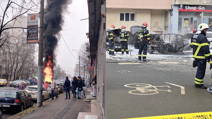 „La sosirea primelor echipaje, incendiul se manifesta violent la nivelul unui autovehicul, afectând și alte 3 autovehicule din proximitate.