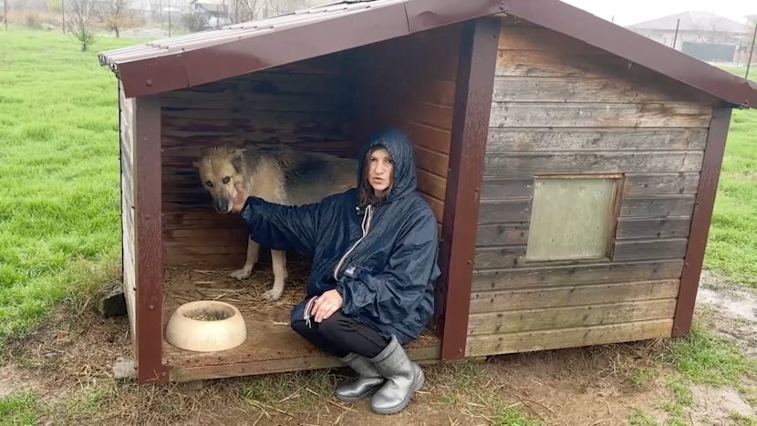 Acest cățel a dispărut într-o noapte de Revelion din cauza petardelor care au fost lansate de către locuitori din zonă, a sărit pur și simplu gardul și l-am găsit după doi ani de zile la 10 km din locul în care ne aflăm acum. Este absolut terorizat de zgomote, este un câine bătrân, putea chiar să moară, putea să-și pierdă viața din cauza zgomotelor.