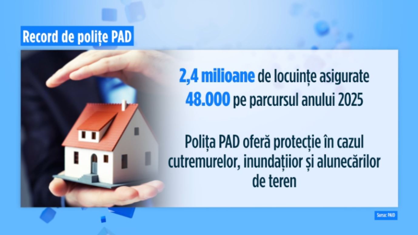 Locuințele românilor asigurate obligatoriu au ajuns la cel mai bun procentaj de la lansarea sistemului, adică din 2010. Aproape 2,4 milioane dintre locuințele din România sunt protejate acum de o poliță PAD, care acoperă riscurile de cutremur, inundații și alunecări de teren.