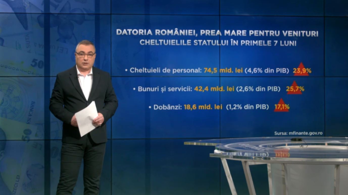 Economiștii de la Asociația CFA România au tras un semnal de alarmă în această săptămână. Finanțarea datoriei devine tot mai scumpă, iar plata dobânzilor poate ajunge la 3% din Produsul Intern Brut, la final de an. Pentru că, la jumătatea anului, costul a ajuns la 1,2%, cu 17% mai mult față de anul trecut.