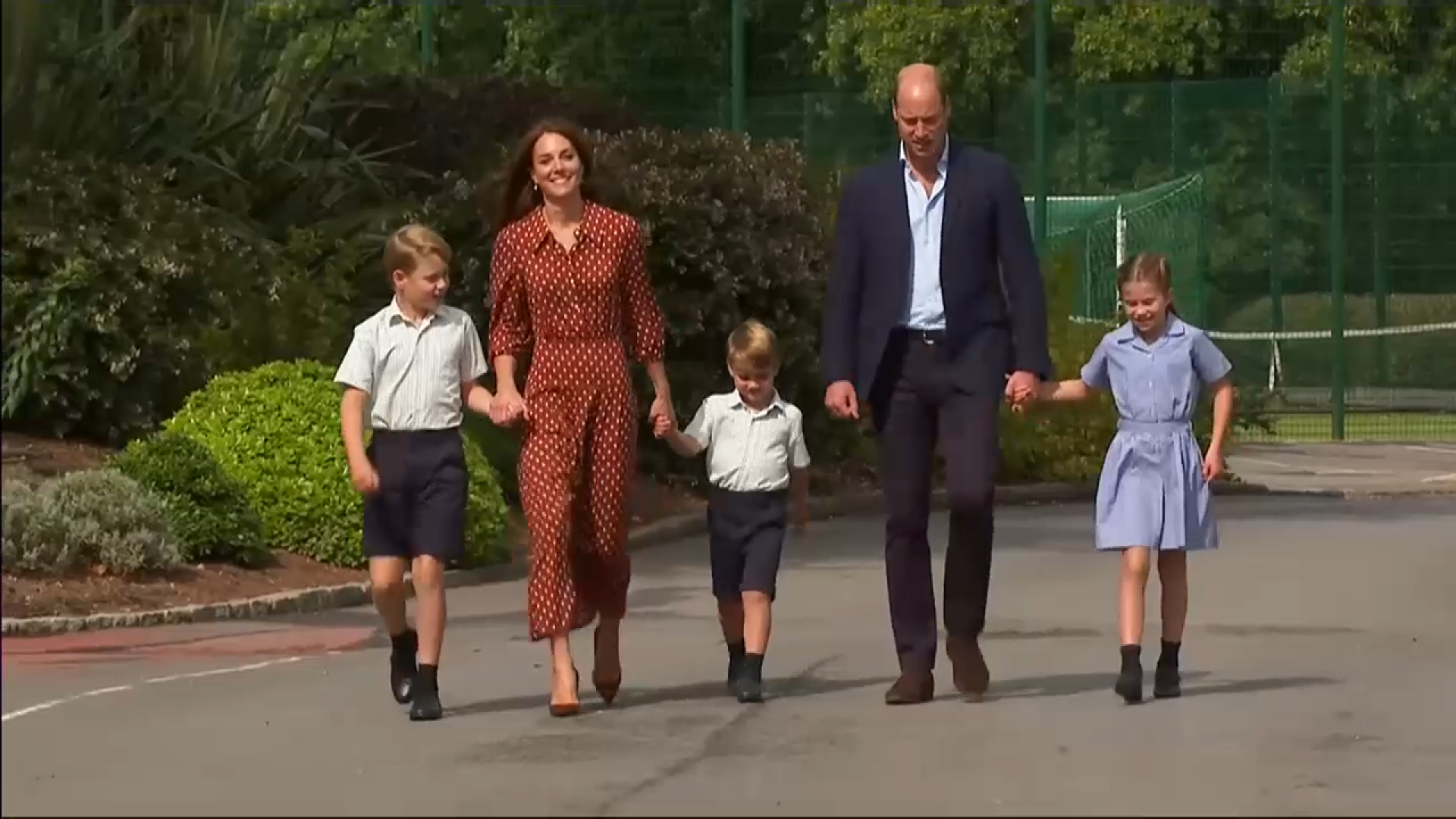 Prințesa Charlotte și prinții George și Louis au fost însoțiți în prima zi de școală de părinții lor, ducele și ducesa de Cambridge. Cei cinci au fost întâmpinați de directorul școlii. George este în clasa a cincea, Charlotte, în clasa a treia, iar mezinul familiei, Louis, este în primul an.