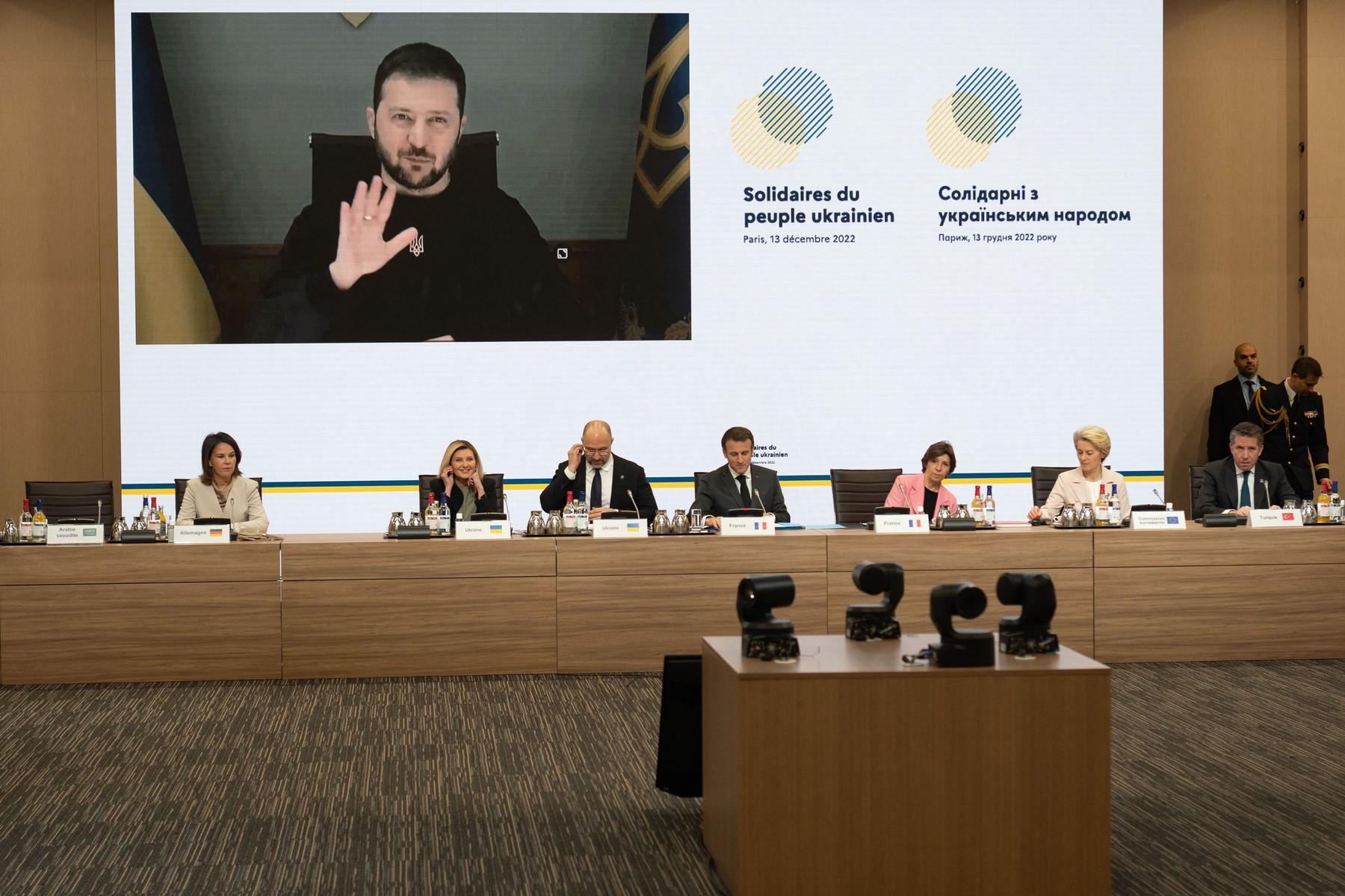 „Ajutorul atinge sau chiar depăşeşte cele 800 de milioane de euro” cerute de preşedintele ucrainean Volodimir Zelenski, a declarat la rândul ei şefa diplomaţiei franceze.